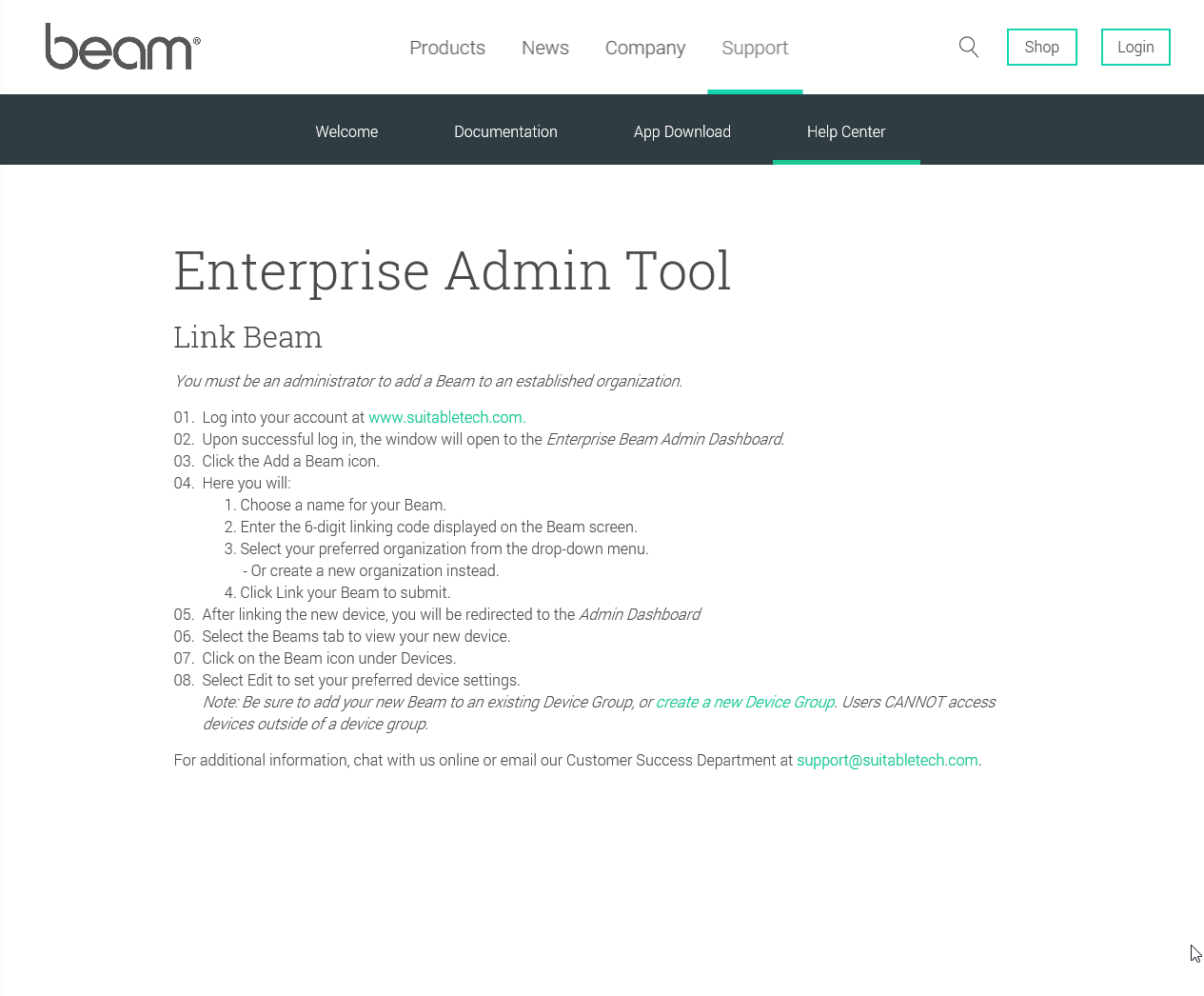 4. Click Link your Beam to submit. - After linking the new device, you will be redirected to the Admin Dashboard